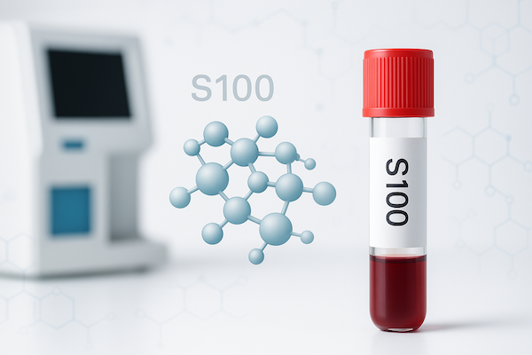 Білок S100 — кальційзв’язувальний білок, який переважно продукується клітинами нейроглії та меланоцитами. Підвищення його рівня відображає ушкодження нервової тканини або активність пухлинного процесу. Визначення S100 використовується як біомаркер нейронального ушкодження та додатковий маркер меланоми.